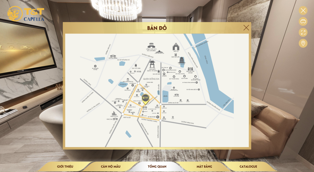 Không những thế, người xem cũng có thể xem vị trí chính xác của T&T Capella trên bản đồ vị trí trực tiếp được tích hợp với Google Maps, giúp khách hàng có được một chuyến “trải nghiệm ảo" thuận lợi và đầy đủ tiện ích nhất.