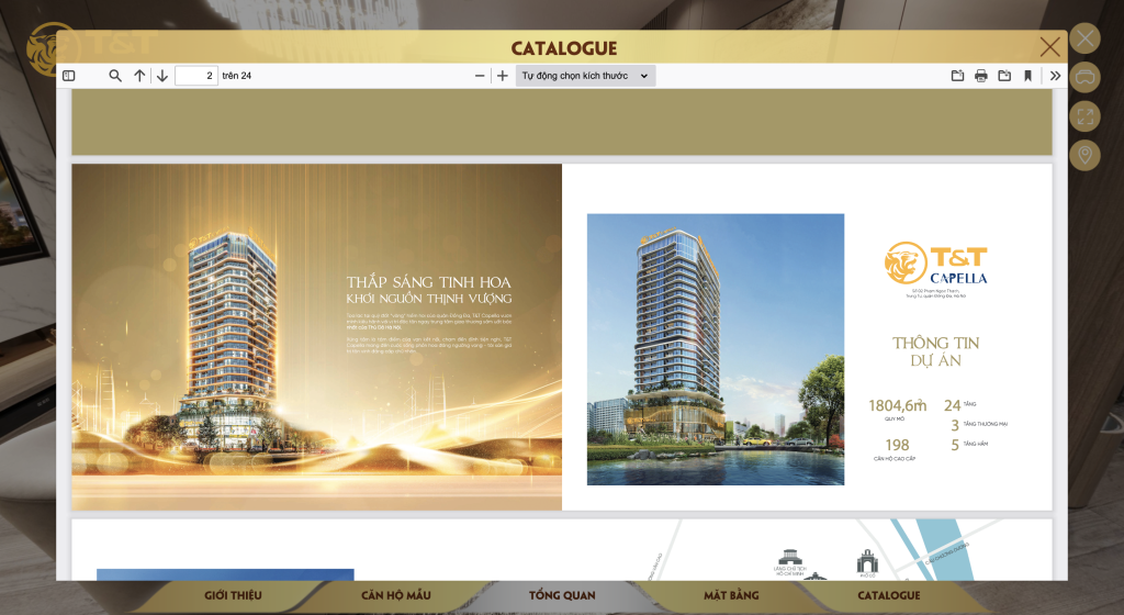 Đặc biệt, đến với dự án bất động sản 360 T&T Capella, khách hàng còn có thể biết được thông tin chi tiết về khu chung cư cao cấp này thông qua catalogue 24 trang vô cùng đầy đủ.