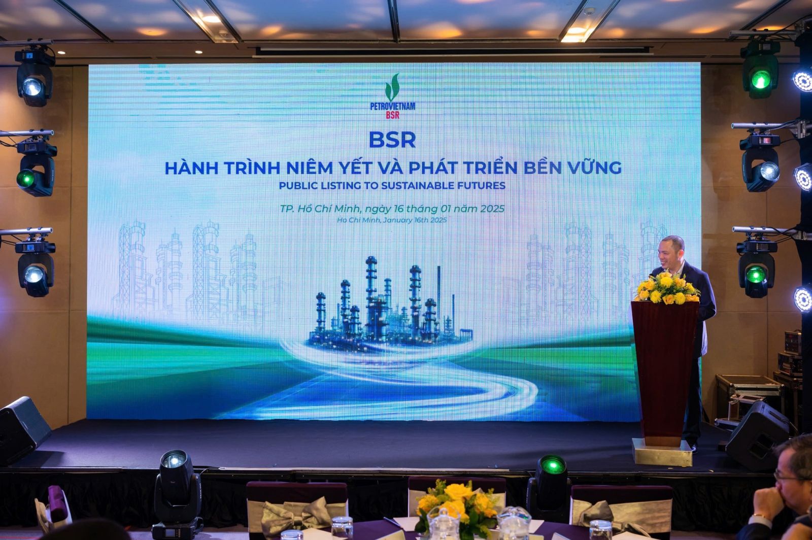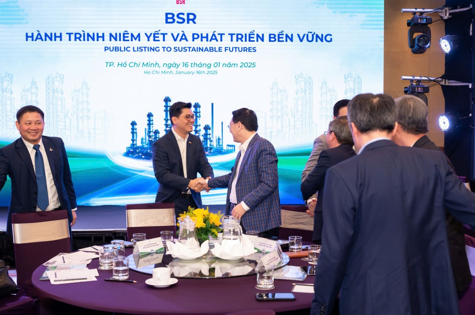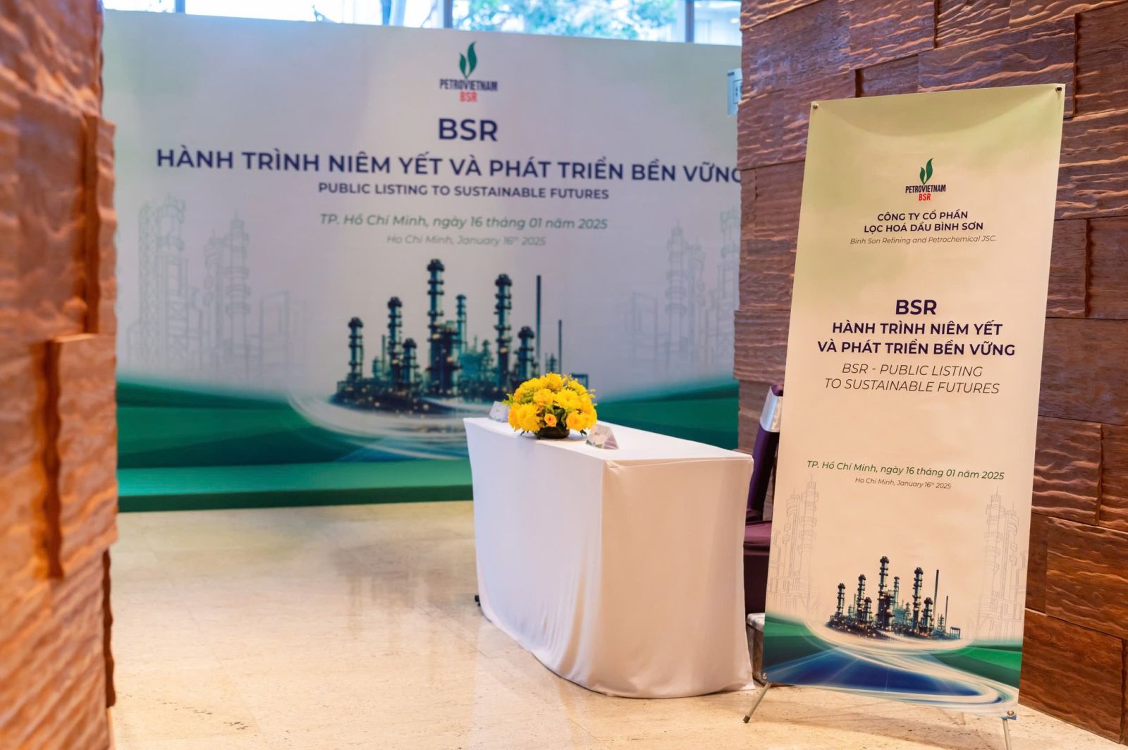 Tại TP. Hồ Chí Minh, ngày 16/01/2025 vừa qua, sự kiện "BSR - Hành trình niêm yết và phát triển bền vững" với sự góp mặt của hơn 100 khách mời bao gồm lãnh đạo cấp cao từ các đối tác chiến lược, tổ chức tài chính, ngân hàng và nhà đầu tư. Đây là sự kiện đánh dấu bước ngoặt mới, Công ty Cổ phần Lọc hóa dầu Bình Sơn (BSR) đã sẵn sàng cho phiên giao dịch đầu tiên tại Sở Giao dịch Chứng khoán TP.HCM (HSX).