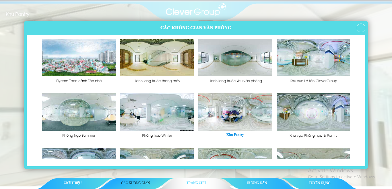 Bố cục và các phòng ban trong hệ thống văn phòng của Clever Group được thể hiện rất rõ ràng, tiện lợi cho khách hàng có thể click vào ngay địa điểm mà mình muốn tham quan và không bị bỏ sót bất cứ một điểm đến nào. Điều này cũng thể hiện được tính bao quát của công nghệ VR 360.
