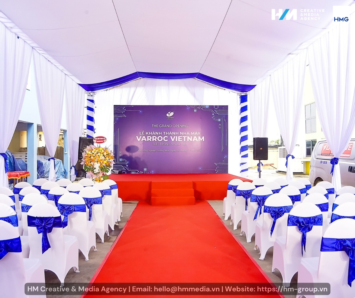 HM Creative & Media Agency hân hạnh là đơn vị đồng hành, tư vấn, xây dựng và tổ chức thành công sự kiện "Lễ khánh thành Nhà máy Varroc Electronics Vietnam" tại Mê Linh, Hà Nội vào ngày 09/04/2024 vừa qua. Kết thúc buổi lễ là sự hân hoan và vui mừng của toàn thể nhân viên nhà máy và khách mời tham dự cùng những cảm xúc, kỉ niệm khó quên.